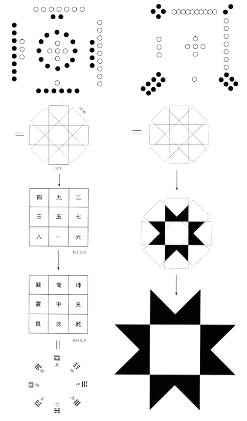 八角星紋發(fā)端久遠,山東大汶口文化中期八角星紋彩陶,安徽凌家灘新時期時代玉版八方圖形,均是河圖洛書的源頭。