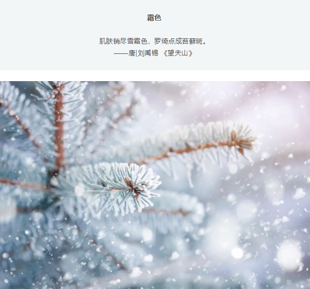 霜色:又稱為雪色、雪白。是古人對于霜雪之白的形容。