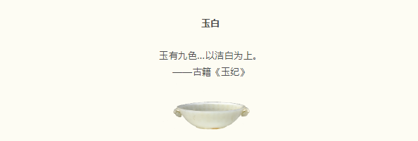 玉白:一般解釋為玉的顏色,即略帶淡青色的瑩白色。如乾隆御題白玉桃式洗。
