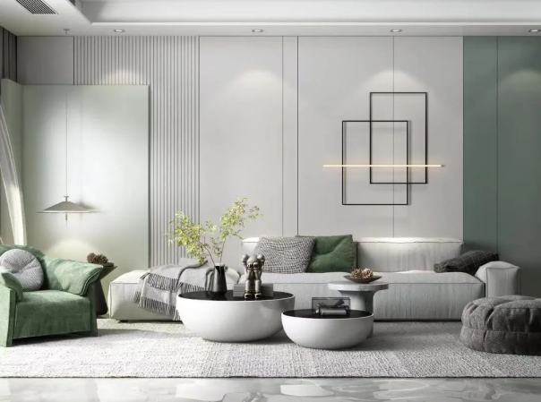 邦弗特「膚感白」,搭配青檸色,空間呈現清新自然的氛圍,構造愉悅人心的色彩空間,制造出時尚靜奢的生活美學。