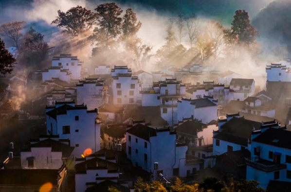 “頳霞拂朝,蒼煙懵夕。”——南朝·梁·江淹