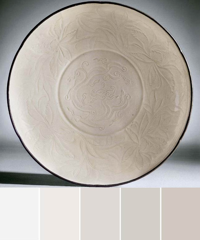 順應宋代人文精神審美,定窯白瓷以白玉為最高審美標準,北宋時期定窯瓷器所施釉水白中閃黃,釉面呈“象牙白”色,器質如凝脂,色彩素凈淡雅。