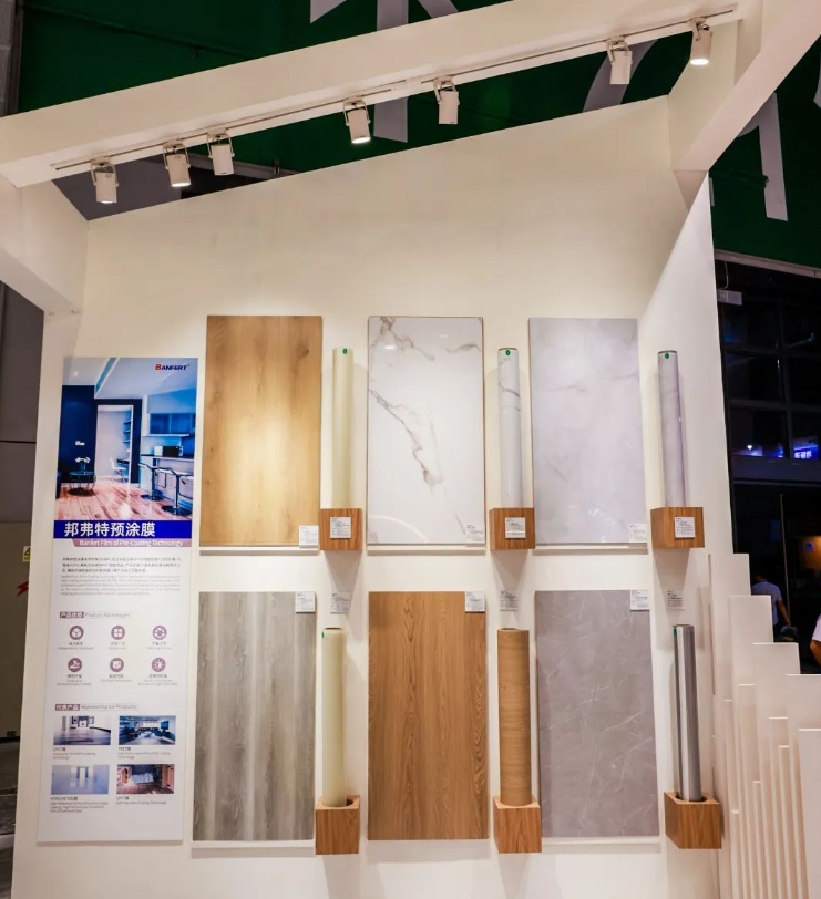 結合生活空間市場趨勢和需求,追尋時代潮流變化,邦弗特通過持續創新材料技術,構建“竹木地板涂層+PVC地材涂層+新型預涂膜+環保膠粘劑+PETG改性膜”的一體化產品結構,全面賦能地、墻、頂、門、柜等領域,聚焦一體化應用落地,為客戶提供高性能、高品質、綠色化、更美觀、全場景應用的價值,融合賦能產業高質量發展。