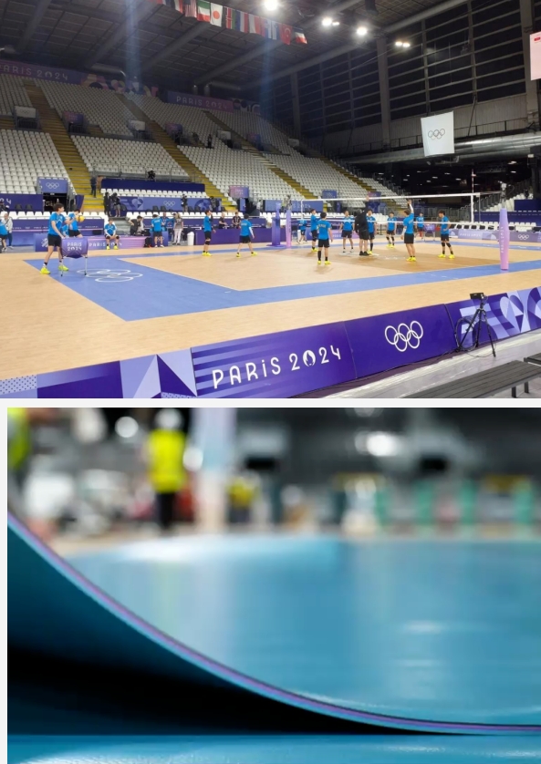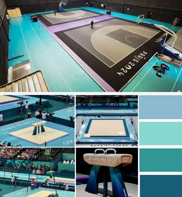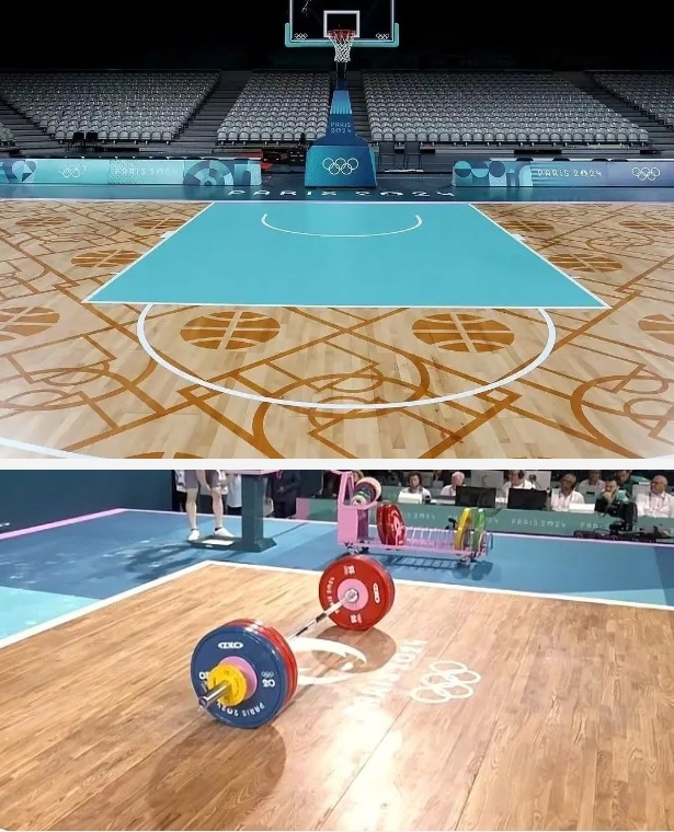 巴黎奧運會的籃球館、排球館、舉重館均使用了木紋地板鋪設裝飾。籃球館和舉重館地板紋樣采用的是小山紋、而排球館保留木材本身的紋樣。