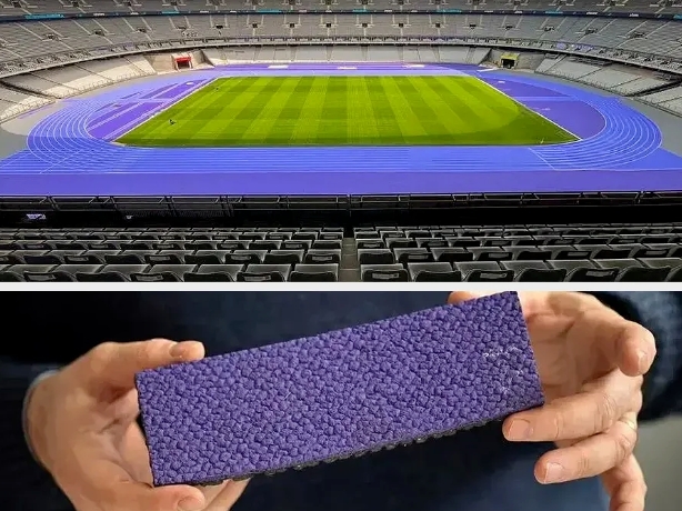 法蘭西體育場田徑跑道,天然橡膠與回收材料的浪漫邂逅,50%源自綠色循環(huán),法式浪漫遇上綠色未來,完美融合!