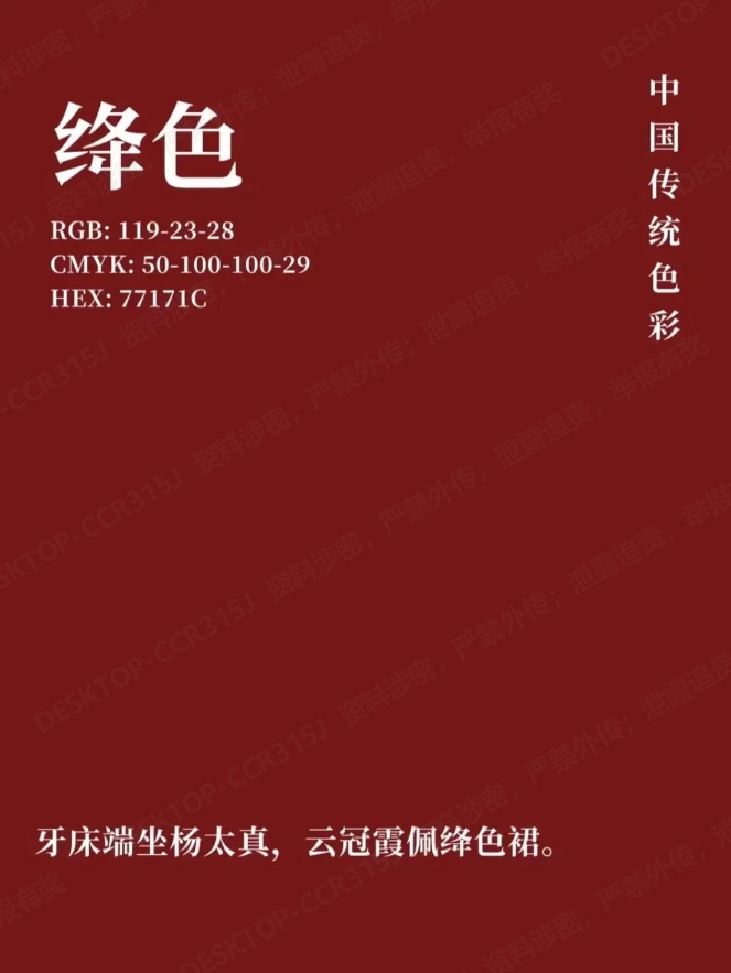 《說文解字》中解釋“絳,大赤也。”絳紅,這一色比朱紅更深沉,調性沉穩大氣,在中國歷史上具有舉足輕重的地位,是中國最早的流行色。絳紅,有種穿越時光的沉淀力量,中西合璧,具有獨特迷人的底氣:復古、成熟、華麗、沉穩、大氣、魅惑、豐盛……