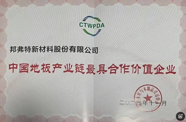 在備受地板行業(yè)矚目的2024世界木地板大會(huì)上,邦弗特新材料股份有限公司憑借其卓越的產(chǎn)品創(chuàng)新和價(jià)值賦能,榮獲了“中國(guó)地板產(chǎn)業(yè)鏈最具合作價(jià)值企業(yè)”大獎(jiǎng),邦弗特董事長(zhǎng)李新雄先生榮獲“中國(guó)地板杰出人物”獎(jiǎng)項(xiàng)。這兩項(xiàng)榮譽(yù)不僅是對(duì)邦弗特在木地板領(lǐng)域不懈努力的認(rèn)可,更是對(duì)其在技術(shù)創(chuàng)新和優(yōu)質(zhì)服務(wù)上的肯定。