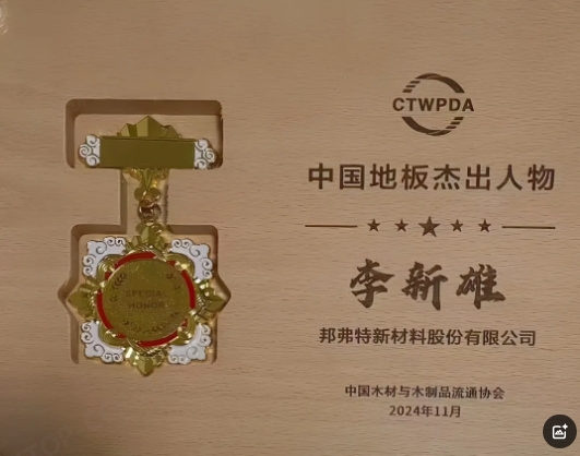 與此同時(shí),邦弗特董事長(zhǎng)李新雄先生榮獲 “中國(guó)地板杰出人物” 稱號(hào)。李新雄先生多年來(lái)帶領(lǐng)邦弗特在技術(shù)、工藝、創(chuàng)意設(shè)計(jì)上不斷創(chuàng)新,秉持“新材料賦能美好生活”的企業(yè)理念,積極塑造品牌形象,為企業(yè)的穩(wěn)健發(fā)展以及行業(yè)影響力的提升奠定堅(jiān)實(shí)基礎(chǔ)。