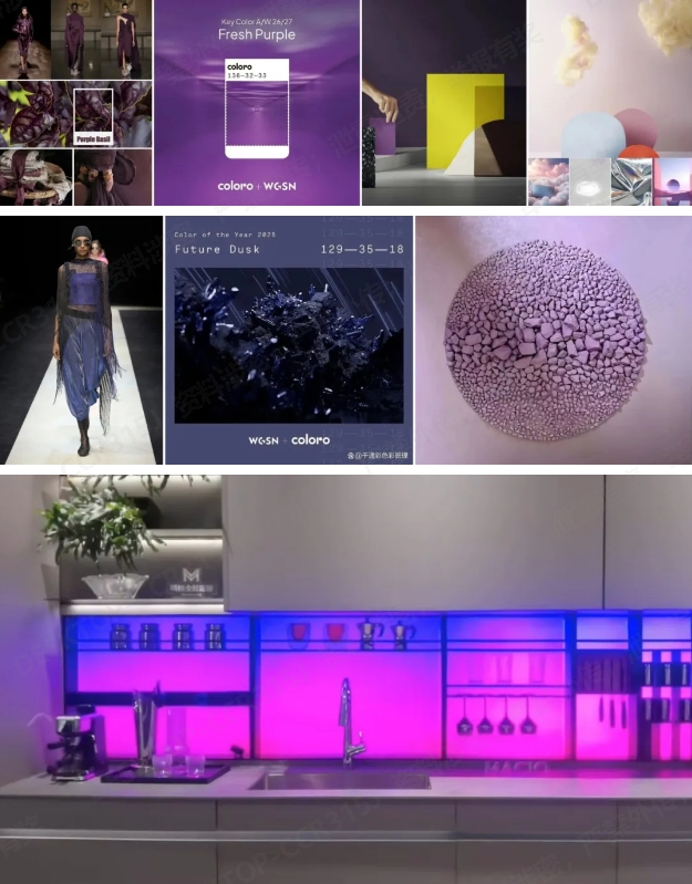 數智化應用:《2024住宅產業數智化應用發展研究報告》指出,激烈的競爭環境下,數字化成為家居行業轉型升級、降本增效的重要抓手。家居行業數字賦能、向新出發,技術如何落地是研究熱點。生成式AI,作為新質生產力的一種,將與實體產業相融合,擴展邊界,探索數字與現實共生的新人居場景是重點,如:家居智能新康養、虛擬萬象場景新體驗等。智能化向善:以人為本,智能向善,代表了人工智能發展的主線。具身智能通過深度學習,服務家居多樣化需求必然成為趨勢。保障數字未來安全發展,是消費者關注的重要指標。智能化美學:通過隱藏、嵌入等極簡整合產品,鏈接不同生活方式場景,將科技元素融入經典,利用可持續材料與智能材料設計是必然趨向。數字化場景意向色彩,多采用超現實的、色感神秘、夢幻的色相,如從藍綠到紫之間的深色,或從藍綠到粉紫之間的高明度色,或大明度比配色,如暗紫與亮黃。數字虹彩、陽極氧化、金屬化和染色效果等均在為數字世界的物化表達加持。