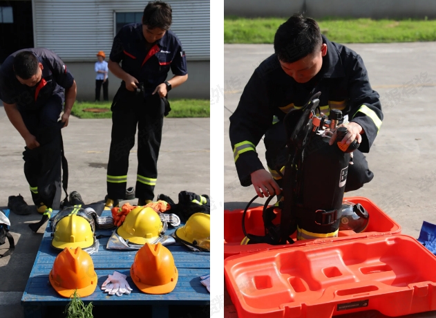 賽事以團隊形式展開,來自倉儲物流一線的九名骨干員工,組成三支精干隊伍同臺競技。嚴格模擬真實火場救援環境,設置了五項核心實戰科目:快速精準穿戴個人防護裝備、熟練佩戴正壓式空氣呼吸器、高效連接消防水槍、精準實施水槍噴射滅火、以及迅速搶救現場物資。